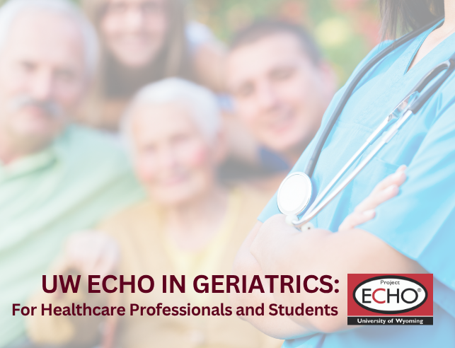 Through the UW ECHO in Geriatrics, sponsored by the Wyoming Center on Aging healthcare professionals throughout the region have the opportunity to receive best-practice recommendations for consideration in management of older adults. You are invited to present challenging cases for discussion and feedback to a network of colleagues as well as a specialist care team. Each ECHO network will also feature a brief community discussion on a variety of important topics related to geriatrics.