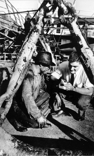 Photo: Clay Blair on assignment. Clay Blair Papers. |