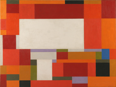 Left: Ilya Bolotowsky (America/Russian, 1907-1981), Untitled, 1952, oil on canvas on board, 25-3/4 x 34 inches, image courtesy of Rehs Gallery