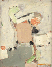 Right: George McNeil (American, 1908-1995), Estuary, 1957, oil on paper on plywood, 28 x 22 inches, image courtesy of ACME Gallery