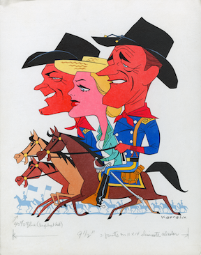 Today’s American culture is inundated with photographs, news, and advertisements idolizing Hollywood stars. How did this current culture of celebrity worship begin? Featuring artwork from the Jacques Kapralik collection at the American Heritage Center, this exhibit follows the rise of celebrity culture and Hollywood publicity through the eyes of Kapralik’s artwork. From the 1930s through the 1950s, caricaturist Jacques Kapralik produced advertising art for many newspapers and Hollywood film studios. His most celebrated type of work was a unique form of three-dimensional caricature made of intricately cut out paper dolls replicating scenes from popular movies of the time. A sampling of Kapralik’s exquisite Hollywood caricature art is displayed in this exhibit.