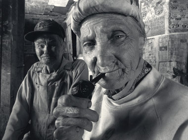 (Left) Shelby Lee Adams (American, b. 1950), Berthie Napier with Pipe and John, 1992, gelatin silver print, 16 x 20 inches, courtesy of the Catherine Edelman Gallery, Chicago