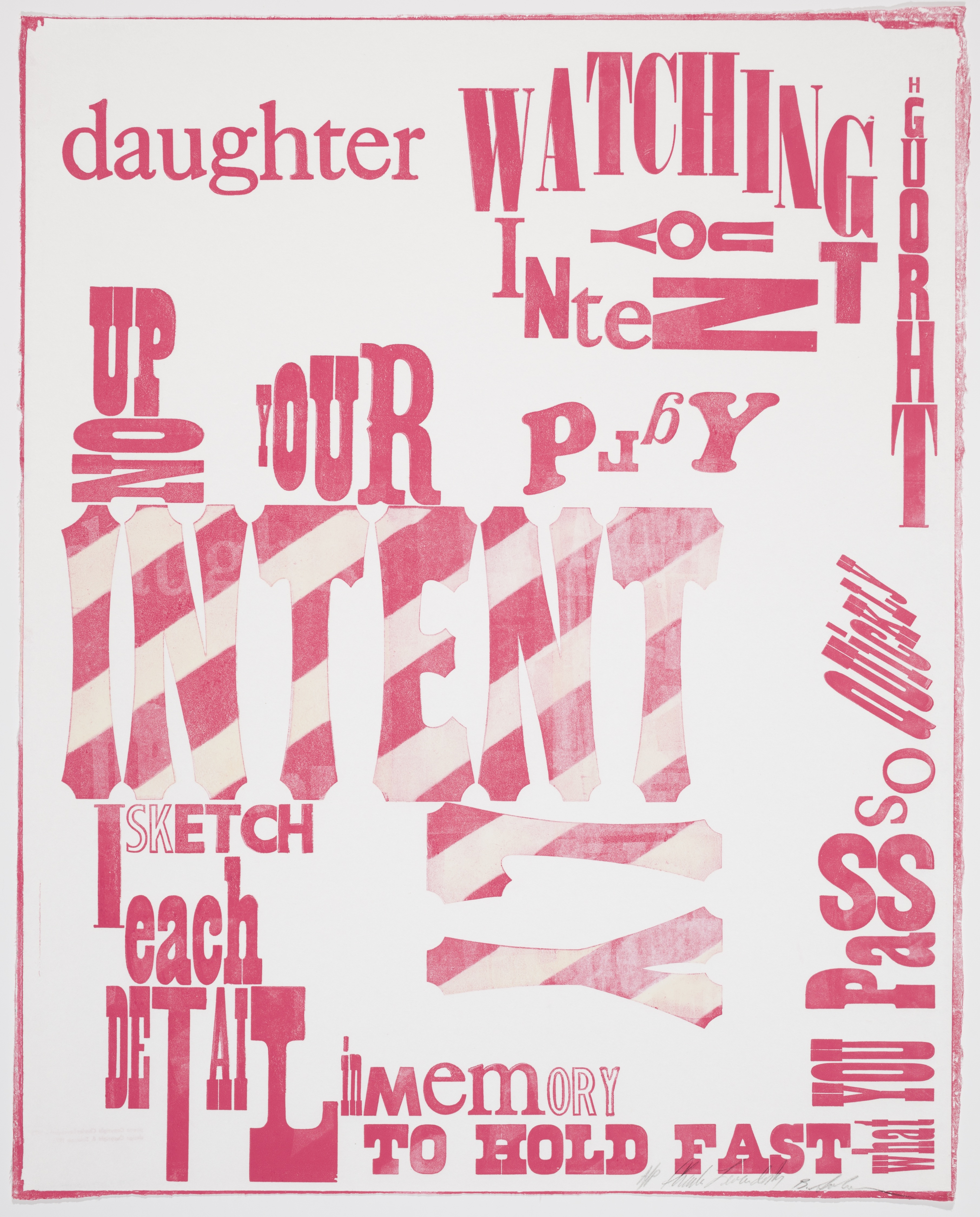 Image: Bernard Solomon (American, 1946-1995), Charles Levendosky (American), Excerpt from text: Daughter Watching You Intent Upon Your Play from the Portfolio "Words & Fonts; Poster Poems and Graphic Design," 1975, woodcut and letterpress on paper, 24 x 19-1/4 inches, gift of Charles Levendosky, 1975.71.5