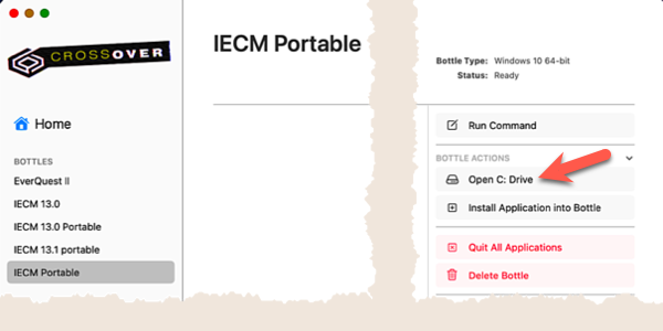 IECM 13.1 User Manual > Installing the IECM > Installation > Installing the IECM on MacOS, Linux and ChromeOS > CrossOver > Portable Version > Copy the IECM into the Bottle (optional) |