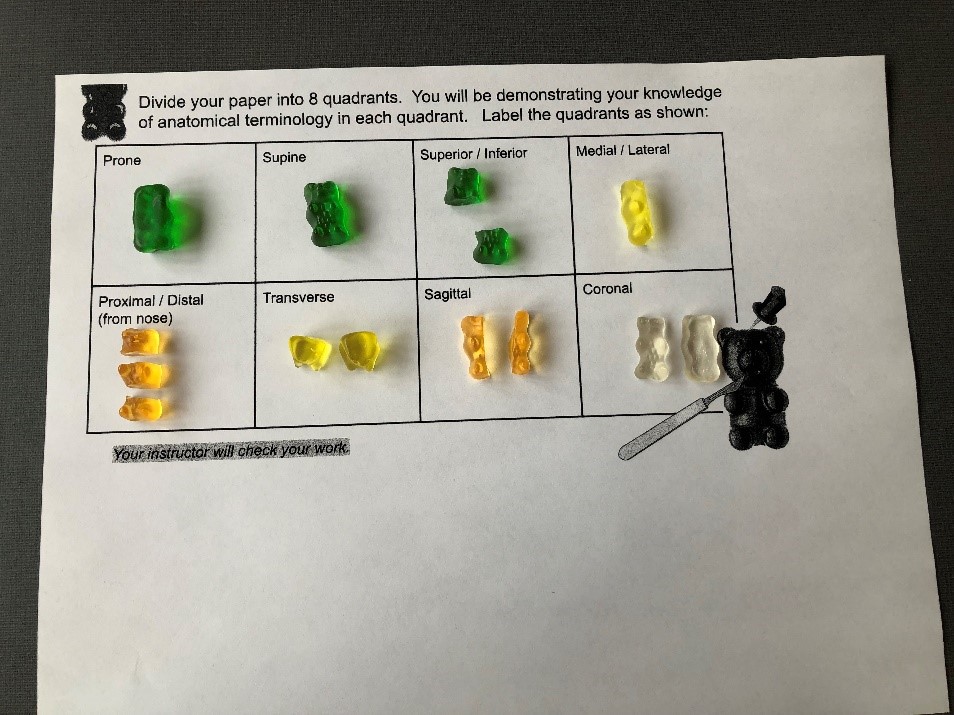 Four Laramie teens learned about the career path of becoming an Athletic Trainer on Saturday, May 21st as part of the final Teen Science Café this academic year. UW Athletic Trainer Jenn Knerr led the café and discussed her career journey and studies related to her degree. Students were able to ask questions and talk about the steps towards pursuing a career in the field. Jenn then led an interactive demonstration explaining the different planes of the human body and anatomical terminology. We expanded on this learning by cutting gummy bears through the anatomical planes to demonstrate the concepts. Jenn then had everyone on the floor learning a new trick to increase stretching!