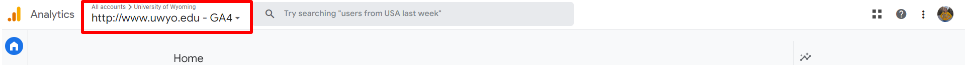 IMPORTANT: Before getting started, make sure your Google Analytics Property is set to http://www.uwyo.edu - GA4.